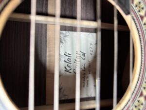 One of my classic and popular wood combinations because of the clarity of sound and appearance. The redwood top evenly expresses the tone of each string. Curly Koa bindings, Spanish Cedar neck, ebony fingerboard, Gotoh UPT tuners, and Oasis warm low G all carbon strings #8101f. The cedar neck and UPT tuners add the light weight of the instrument. French polish shellac finish on the body for a glossy look, toned down to a satin on the neck for a smooth feel.