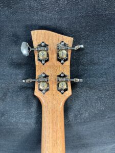 Beautiful 4A grade Walnut Baritone with Italian Gallistrings with wound D and G make for a perfect combination. My first ukulele with an open headstock design bases on my guitar headstock and German Rubner roller tuners. The tuners have guitar sized rollers requiring less turns for accurate tuning. Ebony fingerboard and bridge, bone nut and saddle, and French polish finish. If you do not want the case let me know and I will set up a purchase without the case.
